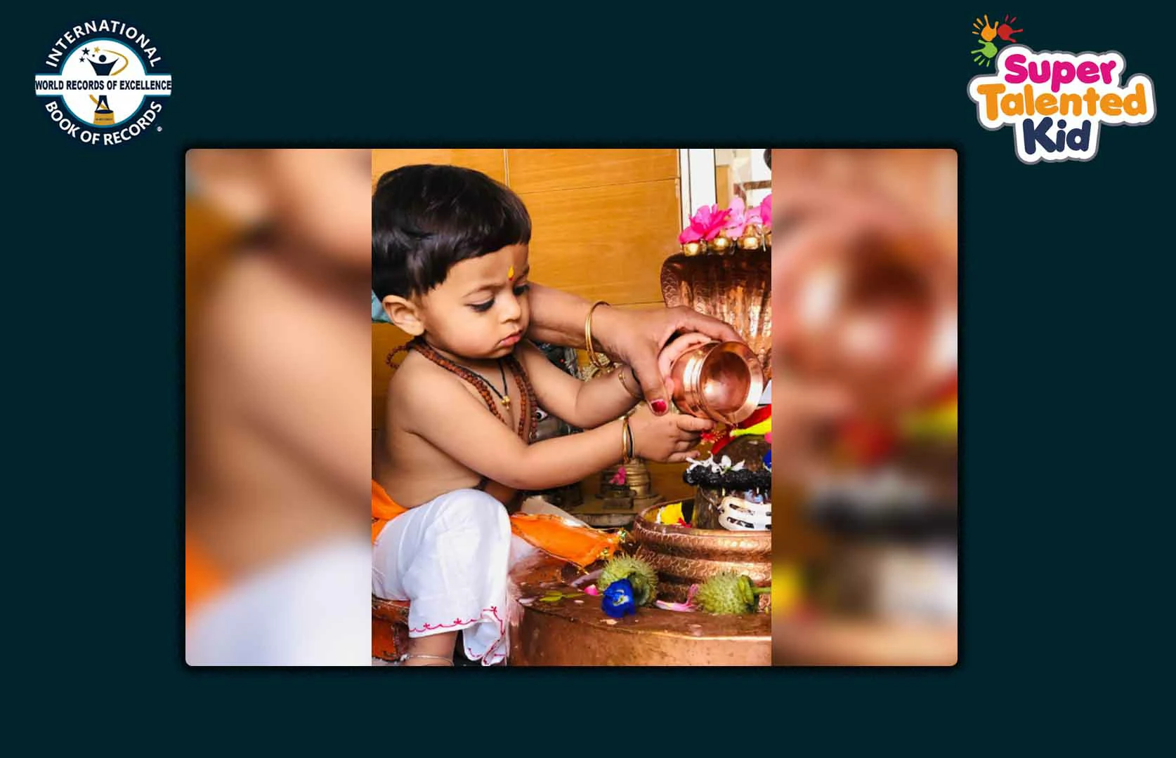 SIDDHARTH is an Amazing kid from Balaganur (Karnataka) India. 4 years 9 months old Siddharth identified and recited names of National Symbols, domestic animals, wild animals, aquatic animals, fruits, vegetables, human body parts, vowels. He also recited counting from 1 to 100 in English, Hindi counting, alphabets along with the spellings of referred word, Months in a year, Days of the week and few English Rhymes. Thus, International Book of Records awarded him with “SUPER TALENTED KID” title on 1st August 2023 and found him “ONE IN A MILLION".